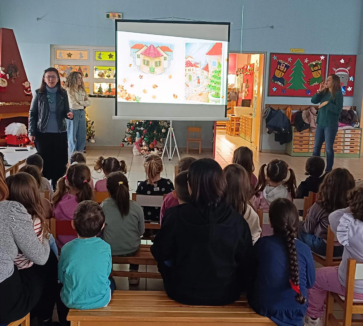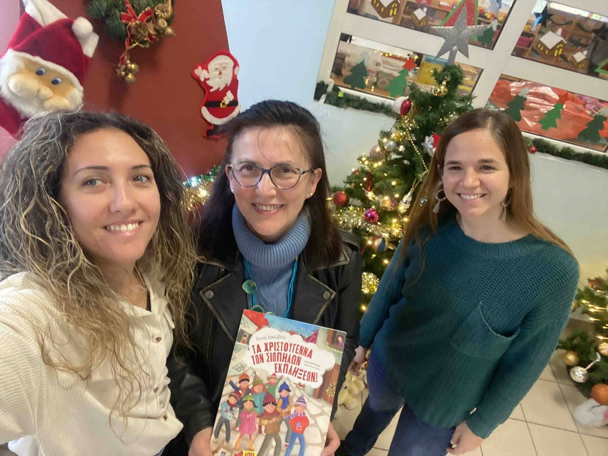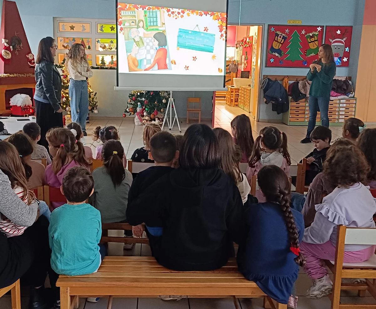 Κατά τη διάρκεια της επίσκεψης, αφηγήθηκαν στα παιδιά την ιστορία του βιβλίου «Τα Χριστούγεννα των Σιωπηλών Εκπλήξεων», προσφέροντας μια βιωματική και ουσιαστική εμπειρία αφήγησης.