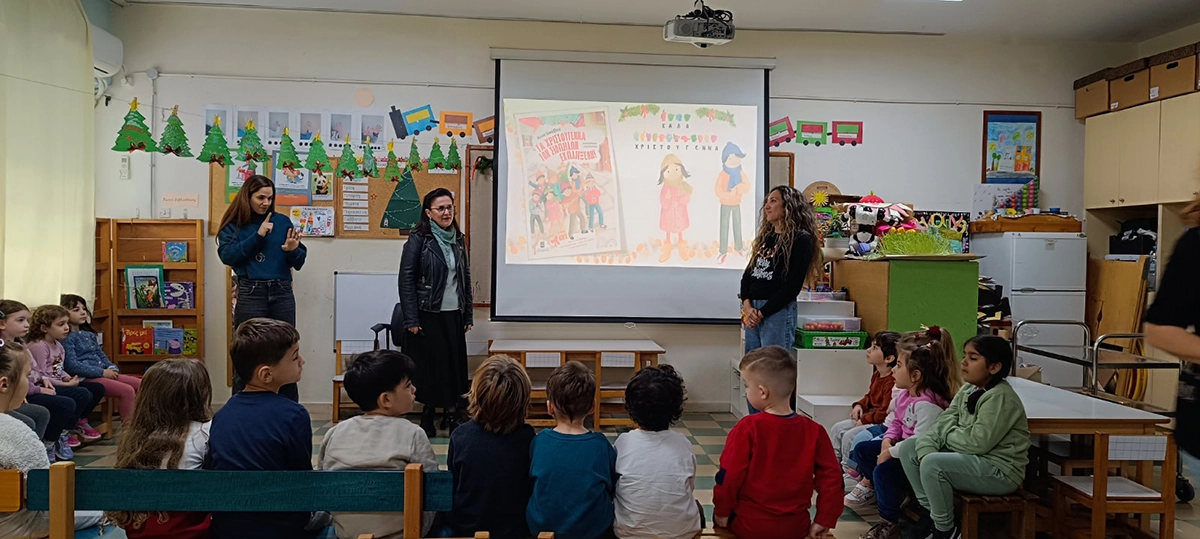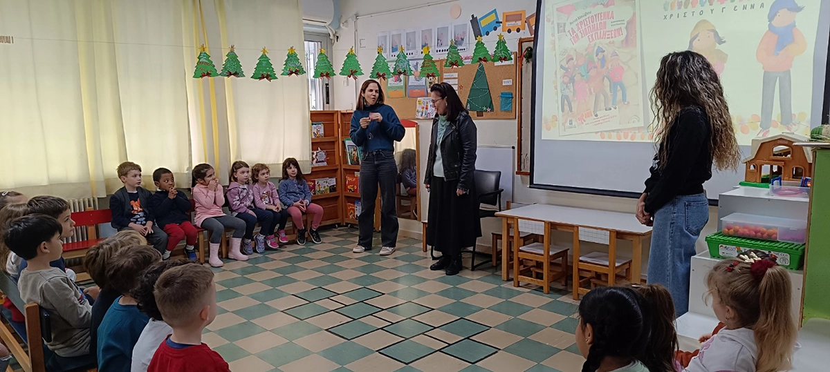 Η συγγραφέας Άννα Ιακώβου αφηγείται το βιβλίο «Τα Χριστούγεννα των Σιωπηλών Εκπλήξεων» στο 21ο Νηπιαγωγείο Αθηνών
