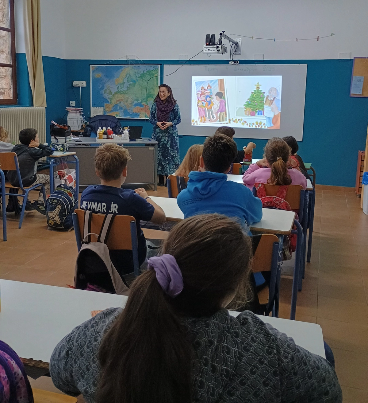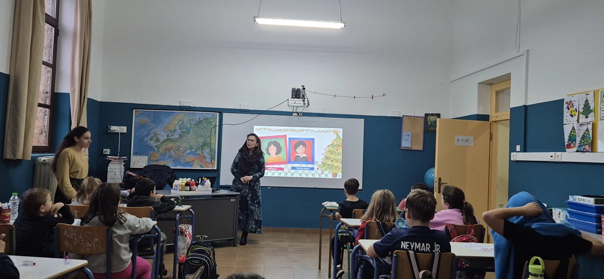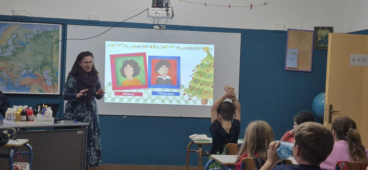 Κατά τη διάρκεια της επίσκεψης, η συγγραφέας αφηγήθηκε στα παιδιά το βιβλίο της «Τα Χριστούγεννα των Σιωπηλών Εκπλήξεων», δημιουργώντας έναν ζεστό και ουσιαστικό διάλογο με τους μαθητές.