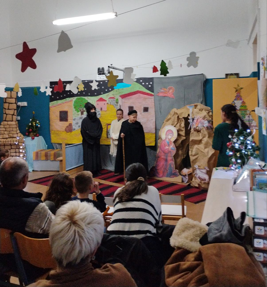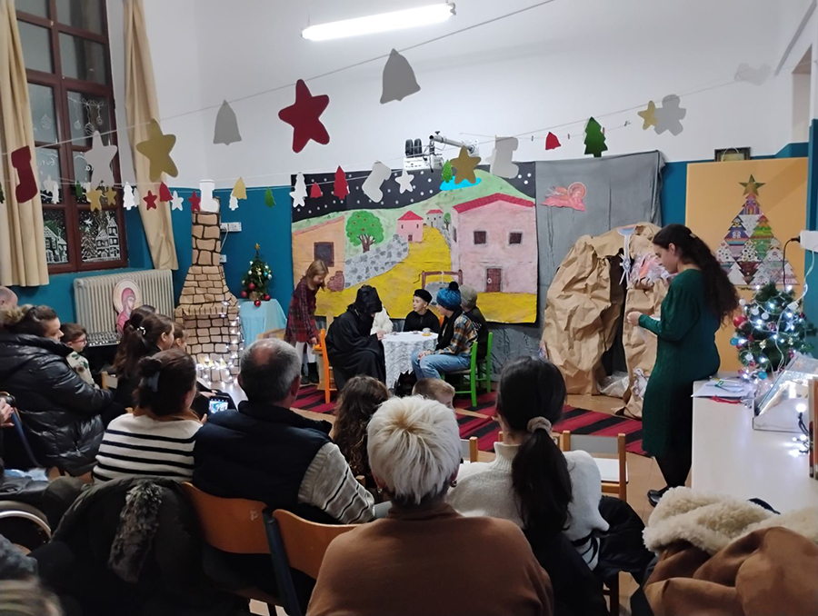 Οι μικροί μαθητές ζωντάνεψαν με τρυφερότητα το θεατρικό έργο «Μια φάτνη στον Ψηλορείτη», ομόνυμο του βιβλίου και βασισμένο στην ελληνική παράδοση.
